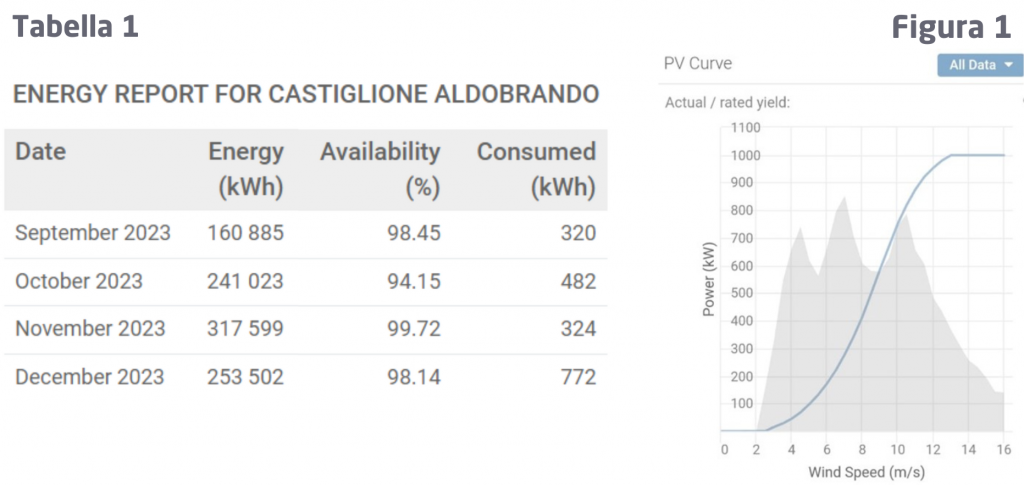 “Siamo molto soddisfatti delle performance del Castiglione in questi primi mesi”, ha commentato l’ingegnere Gianmarco Papi, sviluppatore dei due progetti eolici di ènostra a cui abbiamo chiesto qualche dettaglio tecnico, “considerando la producibilità attesa annua di 2,3 GWh, l’energia effettivamente prodotta per il periodo di riferimento supera le aspettative e fa ben sperare per il 2024”.