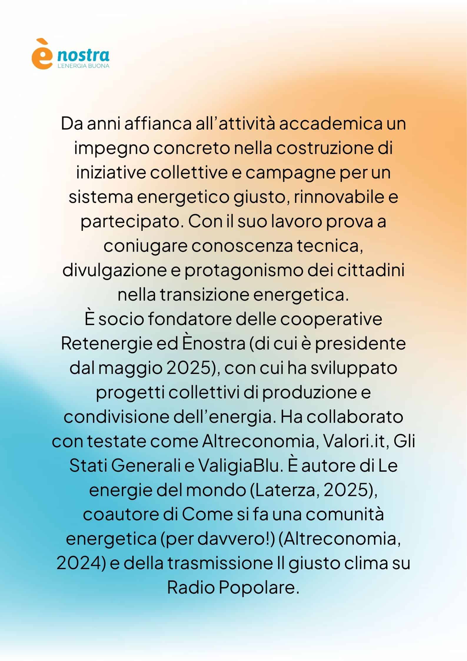 Gianluca Ruggieri è docente e ricercatore in Fisica Tecnica Ambientale all’Università dell’Insubria, dove si occupa di efficienza energetica, transizione ecologica e democrazia energetica…