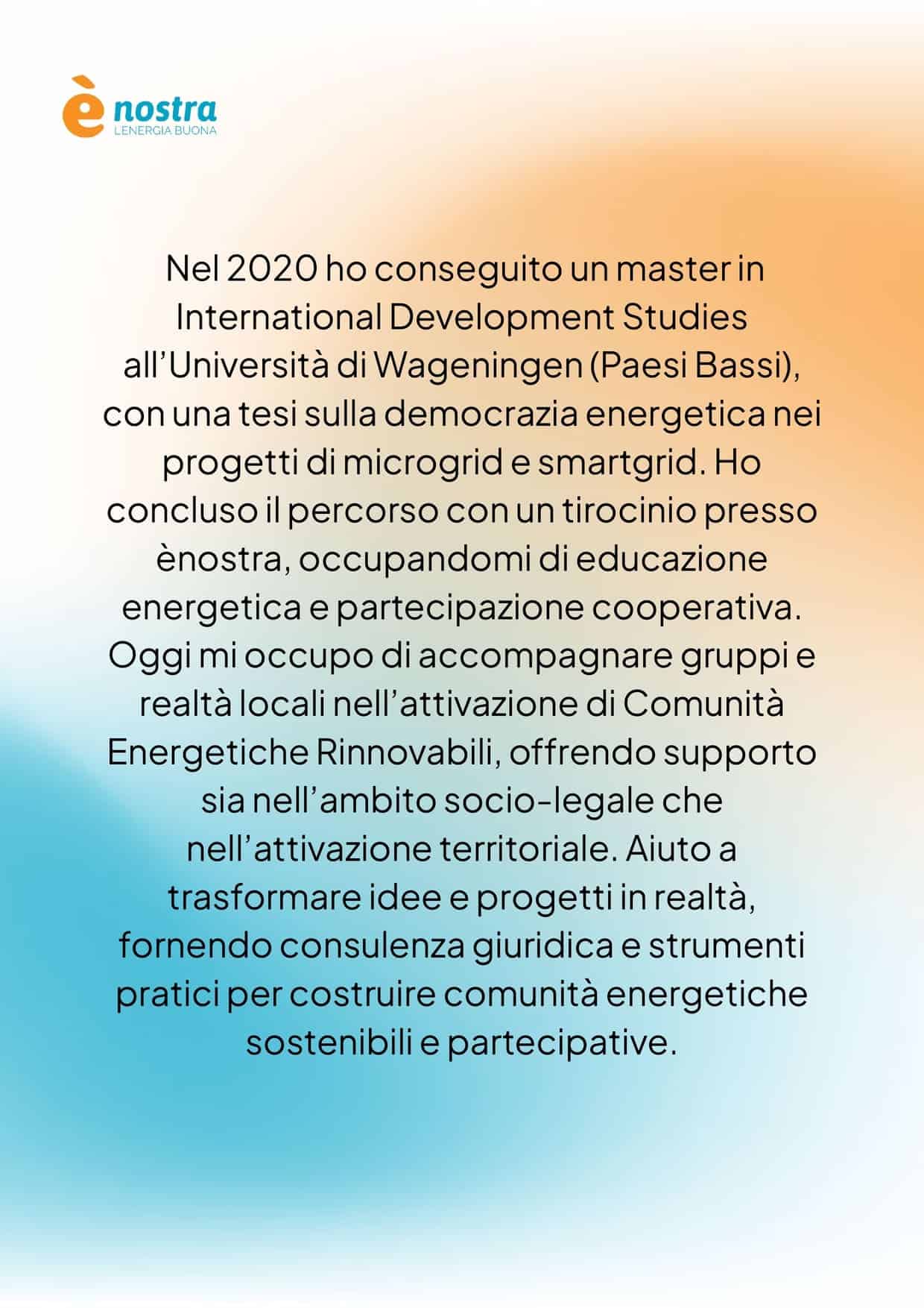 Nel Team di ènostra: Responsabile Comunità Energetiche e Consulenza