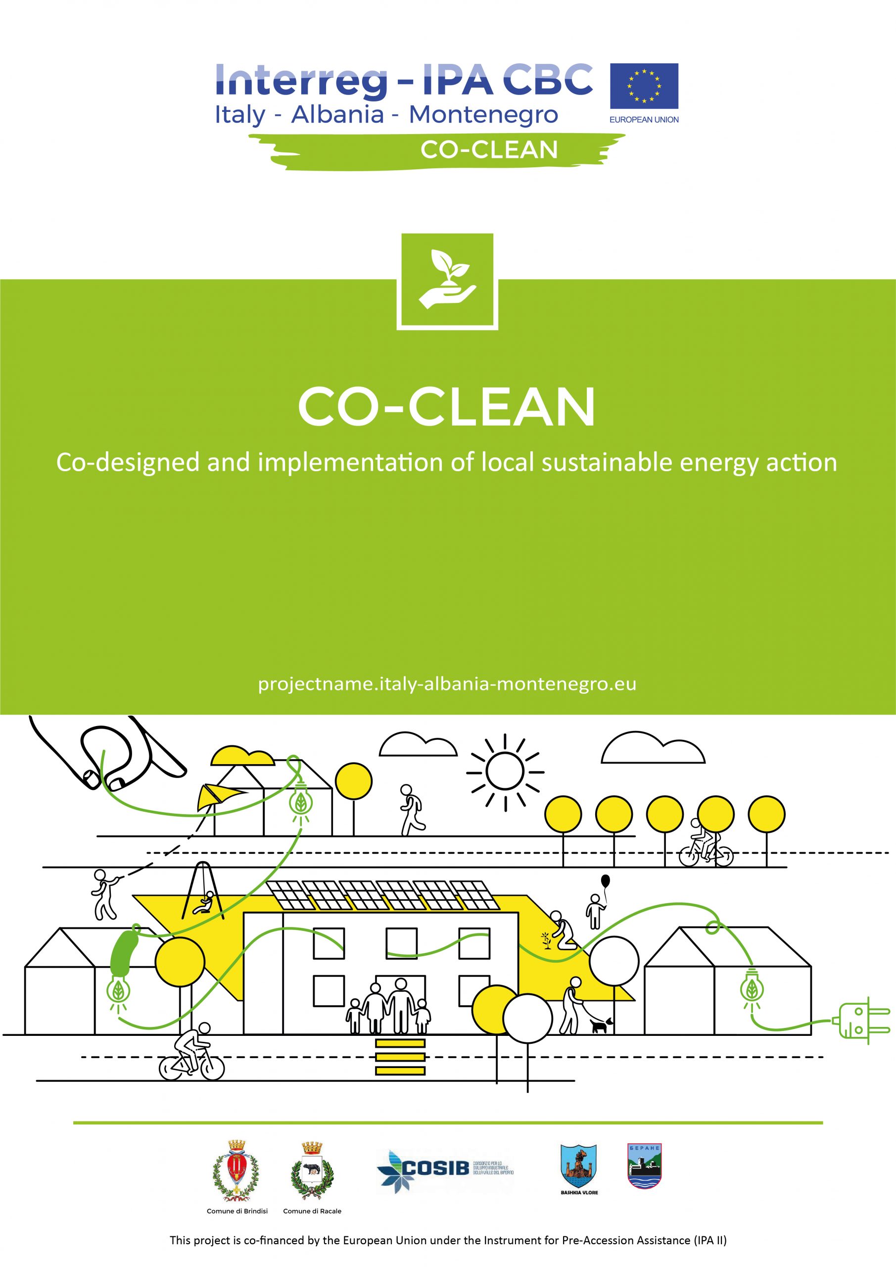 CO-CLEAN “Co-designed and implementation of local sustainable energy action” è un progetto finanziato dal Programma Interreg IPA CBC Italia-Albania Montenegro 2014/2020, il cui obiettivo è quello di aumentare l’efficienza energetica e l’utilizzo delle energie rinnovabili nei territori coinvolti, attraverso la realizzazione di azioni innovative e consolidate, formazione e attività di sensibilizzazione, per modificare il comportamento dei cittadini riguardo l’uso sostenibile delle fonti energetiche e sui temi dell’aumento della CO2 e del cambiamento climatico. Il progetto, che si svolgerà tra maggio e dicembre di quest’anno, vede la partecipazione del Comune di Brindisi (Partner Capofila), di altri due soggetti italiani, il Comune di Racale in Puglia e il Consorzio per lo Sviluppo Industriale della Valle del Biferno nel Molise, e di due municipalità balcaniche, il Comune di Valona in Albania e quello di Berane in Montenegro.