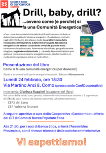 Lunedì 24 febbraio, ore 18:30 presso Confcooperative (Via Martino Anzi 8, 22100 Como) si terrà la presentazione del libro “Come si fa una comunità energetica (per davvero!)”  edito da Altreconomia, e di alcune testimonianze locali.
