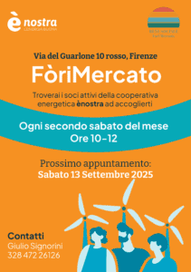 A gennaio 2025, i soci fiorentini di ènostra hanno iniziato a tenere uno Sportello Informativo sulla cooperativa, che è attivo dalle 10 alle 12 ogni secondo sabato del mese presso la rete FòriMercato, progetto sociale e collettivo improntato al mutualismo e all’aiuto in comunità, in via del Guarlone 10 rosso, a Firenze.