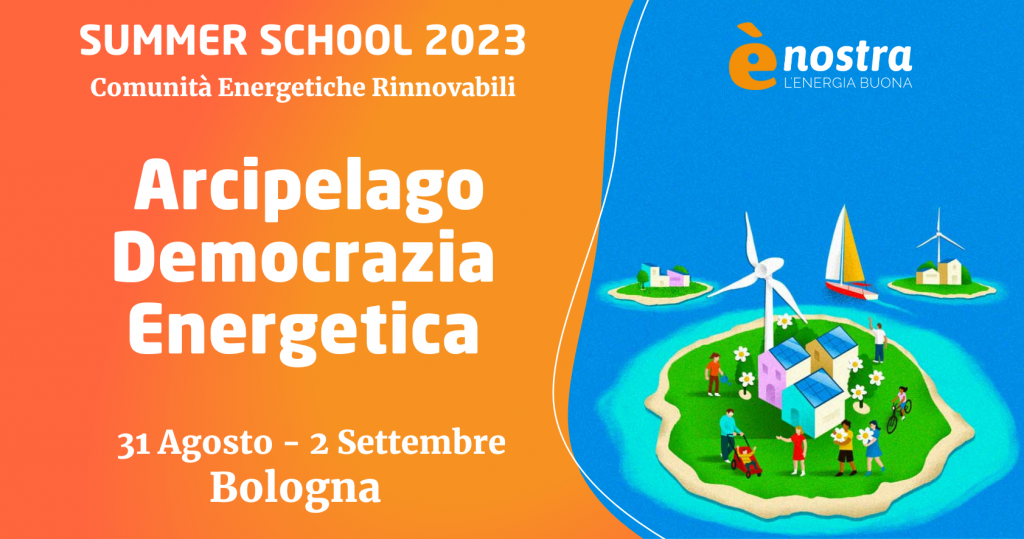 ènostra inaugura Arcipelago Democrazia Energetica, la prima Summer School dedicata alle pratiche di Democrazia Energetica, dalle Comunità Energetiche Rinnovabili (CER) alle iniziative dal basso di condivisione dell’energia. Finalizzata a diffondere competenze e condividere esperienze per promuovere i nuovi modelli energetici partecipativi e democratici, Arcipelago Democrazia Energetica si svolgerà dal 31 agosto al 2 settembre 2023 a Bologna presso la Casa di Quartiere Katia Bertasi. Nelle giornate di giovedì 31 agosto e venerdì 1 settembre si svolgeranno lezioni, approfondimenti, laboratori e attività, per poi concludere l’esperienza sabato 2 settembre con il convegno finale “Pratiche di democrazia energetica. Sfide, difficoltà e successi delle esperienze in corso”, aperto al pubblico e organizzato in collaborazione con l’associazione Comuni Virtuosi.